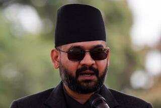就任宣誓するバレンドラ・シャハ氏=27日、ネパール・カトマンズ(ロイター=共同)