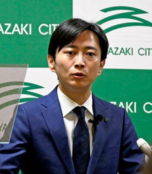 記者会見する宮崎市の清山知憲市長=26日午前、宮崎市役所