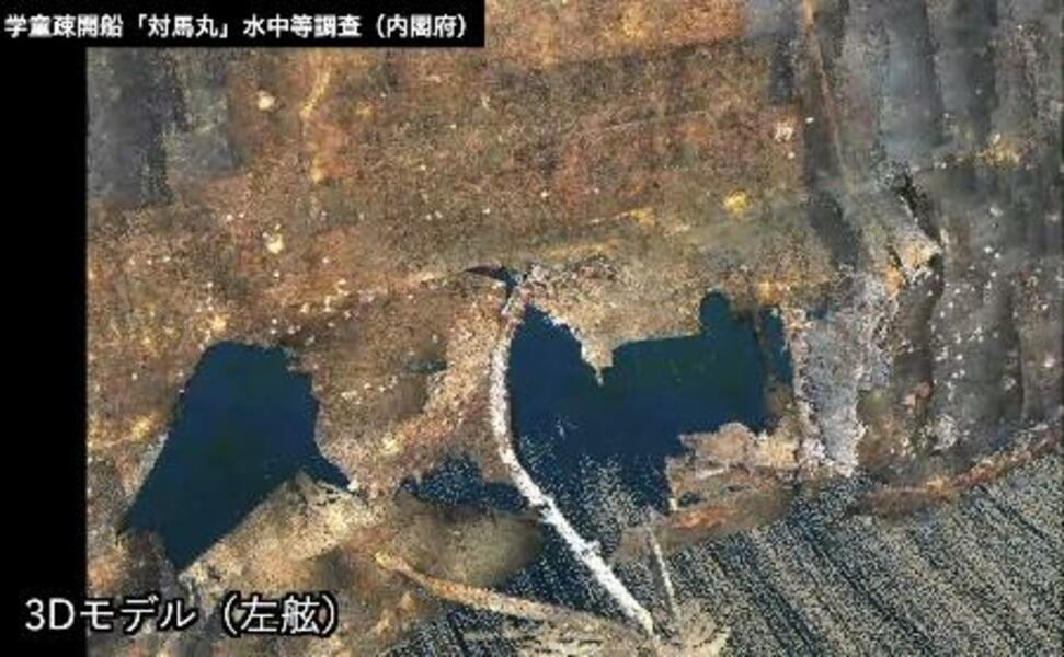 「対馬丸」船体、魚雷被害の穴