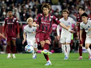 神戸―広島 後半、同点のPKを決める神戸・扇原=ノエスタ