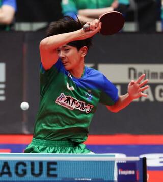 東京―金沢 第2試合のシングルスでプレーする東京・川上流星=代々木第二体育館