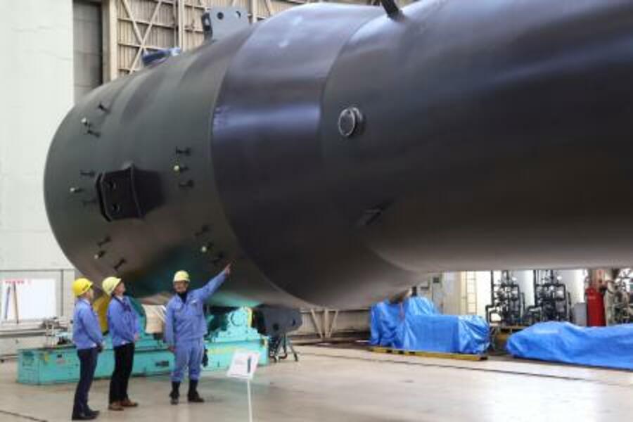 報道陣に公開された蒸気発生器=27日午後、神戸市