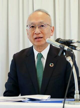 記者会見する名古屋銀行の藤原一朗頭取=28日午前、名古屋市