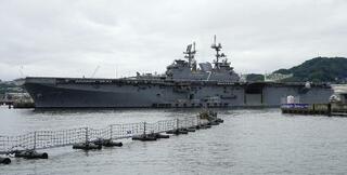 米海軍の強襲揚陸艦「トリポリ」=2025年6月、長崎県・佐世保港