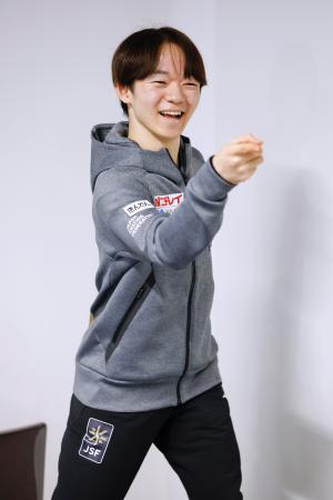 銀メダル獲得から一夜明け、取材に応じる鍵山優真=29日、プラハ(共同)