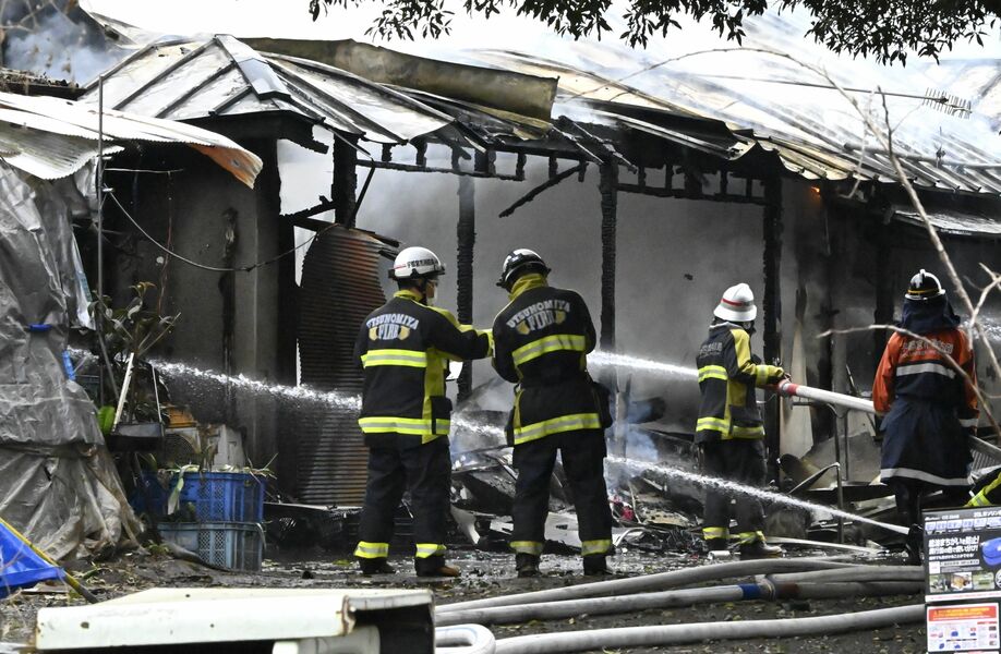 宇都宮市新里町で発生した建物火災=30日午前、宇都宮市新里町乙