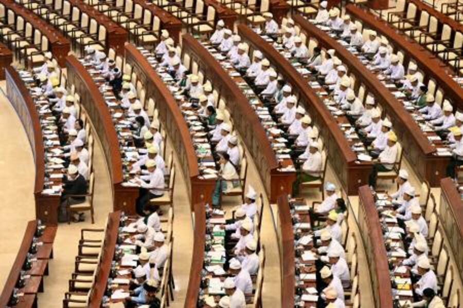 30日、ミャンマーの首都ネピドーの議会下院で開かれた協議(共同)