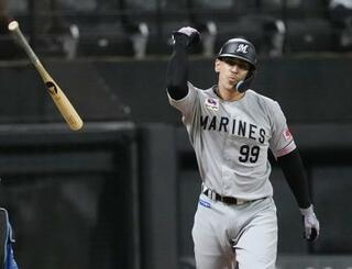 4回、先制3ランを放ったロッテのソト=エスコンフィールド