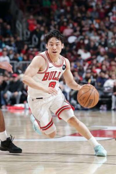 ペーサーズ戦でドリブルするブルズの河村=シカゴ(NBAE・ゲッティ=共同)