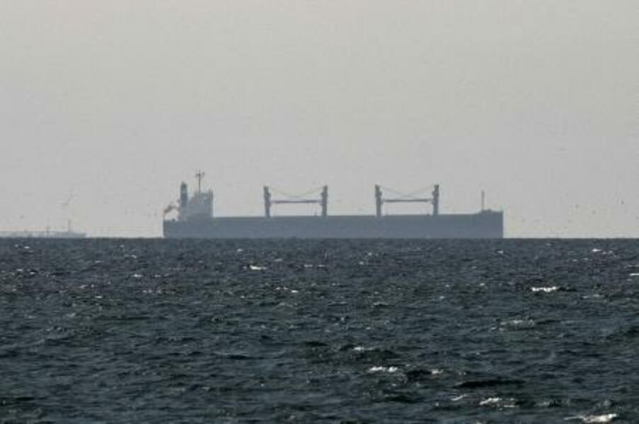 アラブ首長国連邦(UAE)沖のホルムズ海峡付近を航行する貨物船=3月(ロイター=共同)