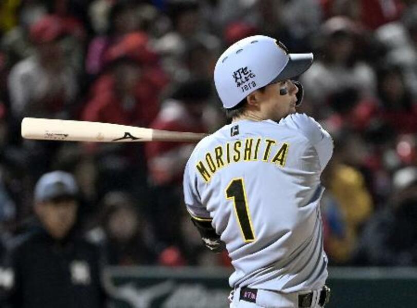 7回阪神無死満塁、森下が中前に2点打を放つ=マツダ
