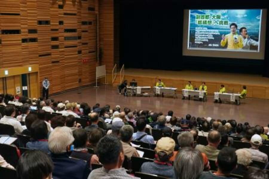 大阪維新の会の大阪市議団が開いた「大阪都構想」に関する市民との対話集会=5日午後、大阪市城東区