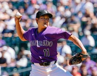 フィリーズ戦に先発し、6回1失点で今季初勝利を挙げたロッキーズ・菅野=デンバー(ロイター=共同)