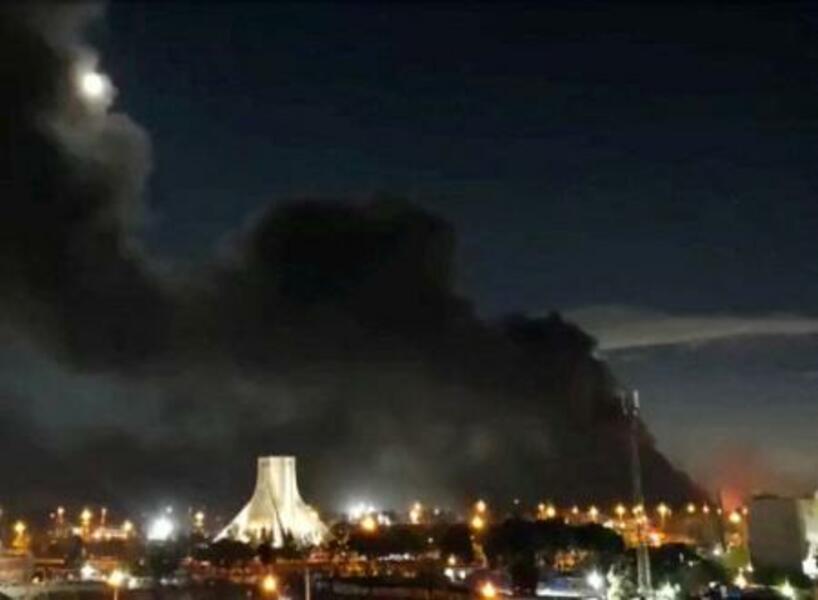 イラン首都テヘランで、攻撃後に立ち上る煙=6日(ソーシャルメディアの動画から、ロイター=共同)