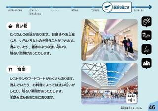 羽田空港国際線エリアで、光やにおいの刺激が強い場所を説明した電子冊子のページ(運営会社提供)