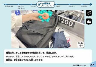 羽田空港国際線エリアの手荷物検査について説明した電子冊子のページ(運営会社提供)