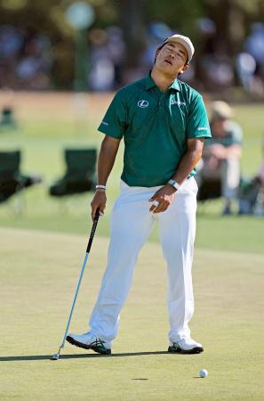第3ラウンド、17番でパーパットを外した松山英樹。通算2アンダーで29位=オーガスタ・ナショナルGC(共同)