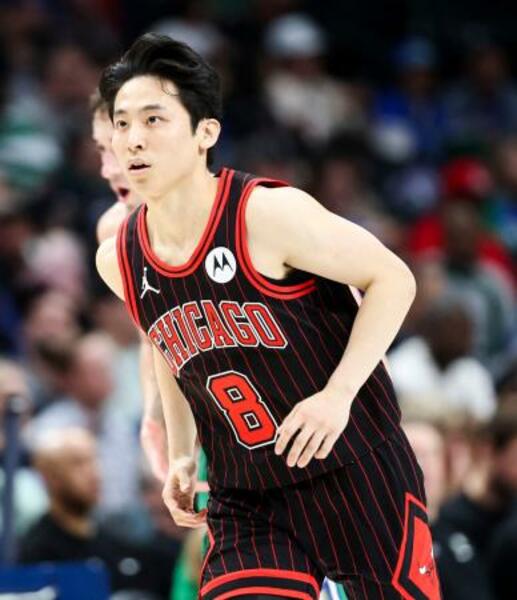 マーベリックス戦で得点を決めたブルズの河村=ダラス(ロイター=共同)
