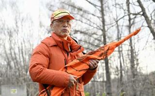 ヒグマの生息調査に参加した北海道猟友会砂川支部長の池上治男さん=14日午前、北海道砂川市