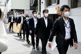 東亜建設工業横浜支店の家宅捜索に向かう神奈川県警の捜査員=14日、午前10時2分、横浜市中区
