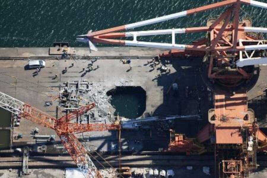 作業員の転落事故があった、JFEスチール東日本製鉄所敷地内のクレーン解体現場=8日、川崎市川崎区