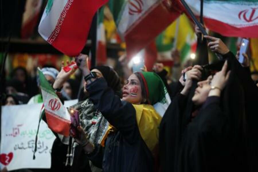 イランの首都テヘランで米国とイスラエルに抗議する人々=12日(ゲッティ=共同)