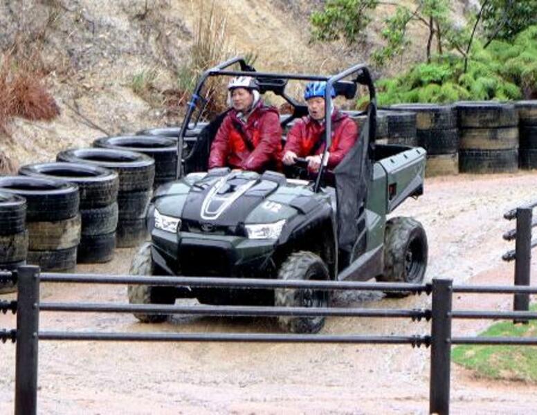 「ネスタリゾート神戸」が報道関係者らに公開した、バギーに乗って楽しむ新アトラクション=15日午後、兵庫県三木市