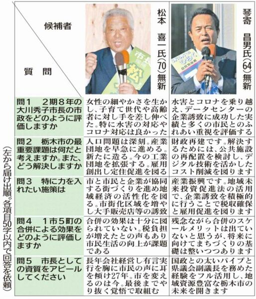 下野市議選立候補予定者アンケート 整備中のスマートIC周辺、ものづくり…