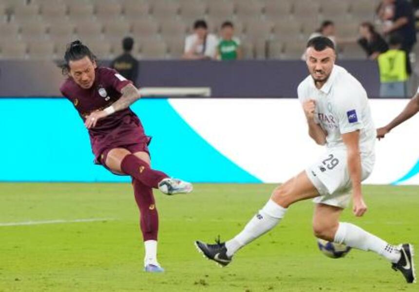 神戸―アルサド 後半、チーム2点目のゴールを決める神戸・井手口(左)=ジッダ(共同)