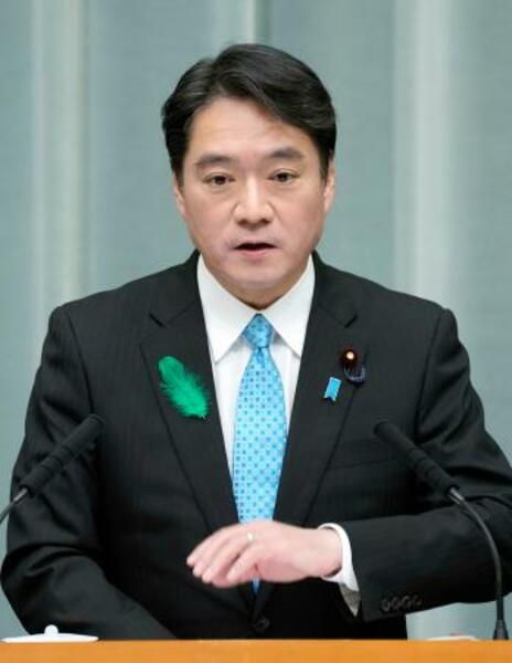 記者会見する尾崎官房副長官=17日午前、首相官邸