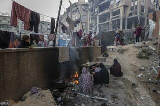 イスラエルの攻撃で破壊されたガザの街並み=14日(ゲッティ=共同)