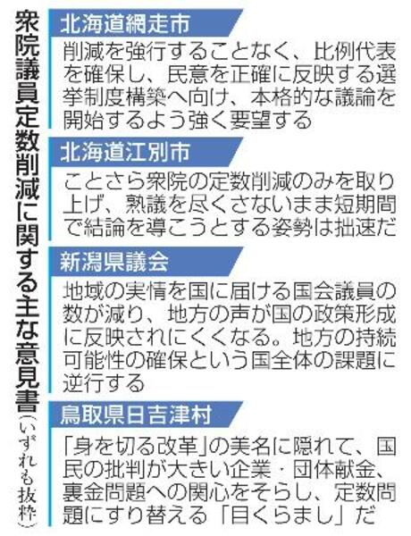 衆院議員定数削減に関する主な意見書