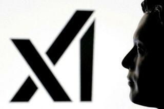 Xのロゴとイーロン・マスク氏の横顔(ロイター=共同)