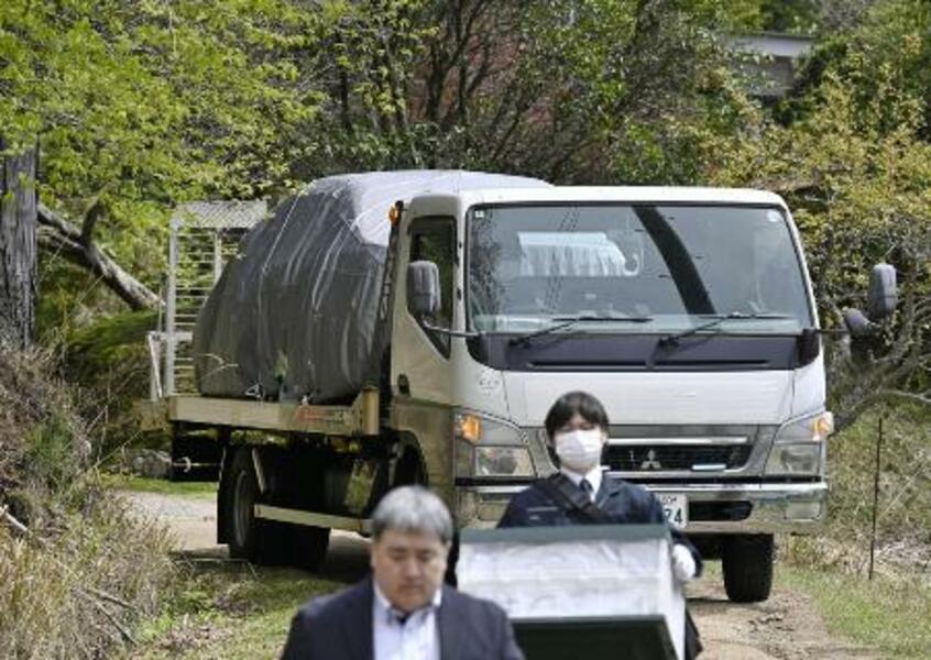 安達優季容疑者の自宅から運び出される車=17日、京都府南丹市