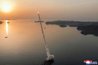 北朝鮮のミサイル総局が実施した戦術弾道ミサイルの試射=19日(朝鮮中央通信=共同)