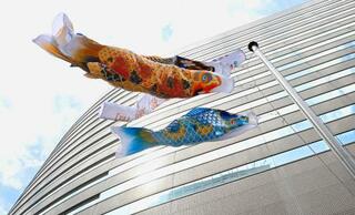 東京・霞が関の空を泳ぐこいのぼり=20日午前