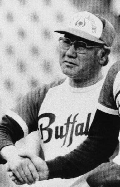 近鉄監督当時の岡本伊三美さん=1986年、藤井寺球場