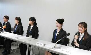 記者会見する「ナガサキ・ユース代表団」の学生=20日午前、長崎県庁