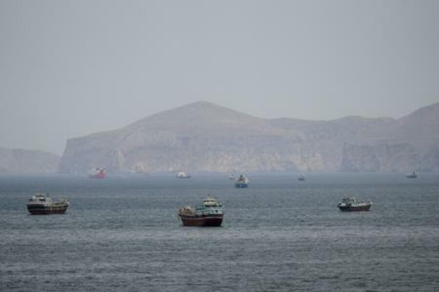 ホルムズ海峡の船舶=22日(ロイター=共同)