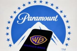 ワーナー・ブラザース・ディスカバリー(手前)とパラマウント・スカイダンスのロゴ(ゲッティ=共同)