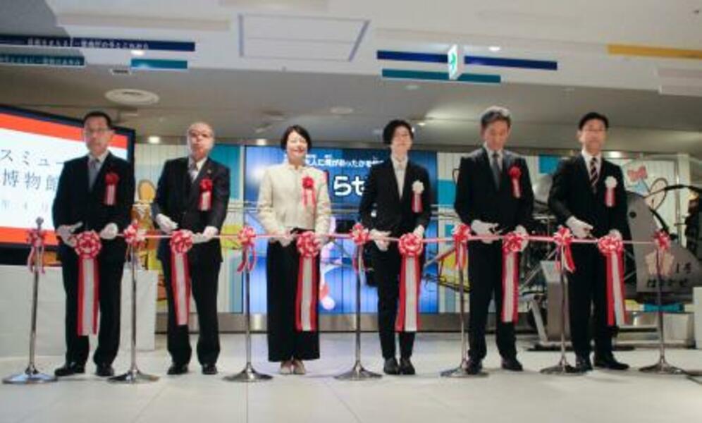 警察博物館「ポリスミュージアム」の開館式。右から3人目は警視庁の朝野郁美広報課長=24日午前、東京都品川区