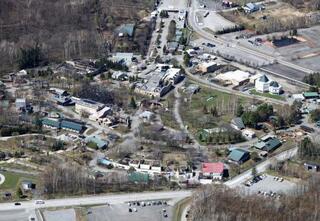 現場検証が行われた旭山動物園。手前中央に焼却炉の建物がある=25日午前10時23分、北海道旭川市(共同通信社ヘリから)