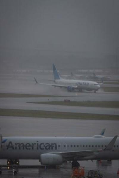 ユナイテッド航空の航空機(奥)とアメリカン航空の航空機=23日、米フロリダ州(ロイター=共同)