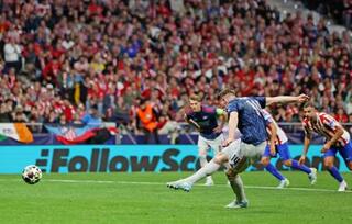 アトレチコ・マドリード戦でPKを決めるアーセナルのヨケレス=マドリード(ロイター=共同)