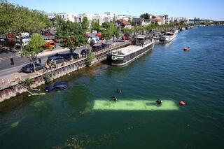 パリ近郊で、セーヌ川に転落し水没したバス=30日(ロイター=共同)