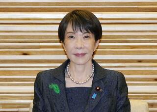 水俣病患者らの支援施設を訪問し、胎児性患者の坂本しのぶさん(左手前から2人目)らとの面会に臨む石原環境相=30日午後、熊本県水俣市(代表撮影)