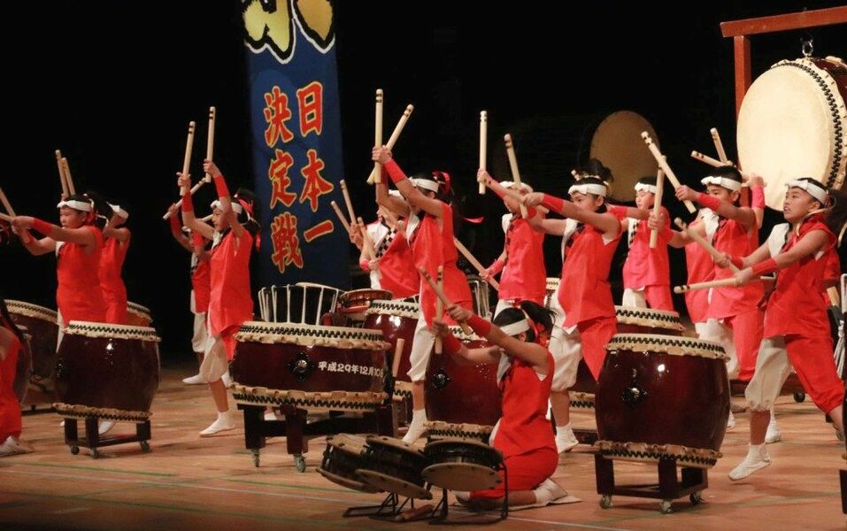 昨年12月「太鼓祭 第10回日本一決定戦・組太鼓ジュニアの部」で日本一を勝ち取った演技。