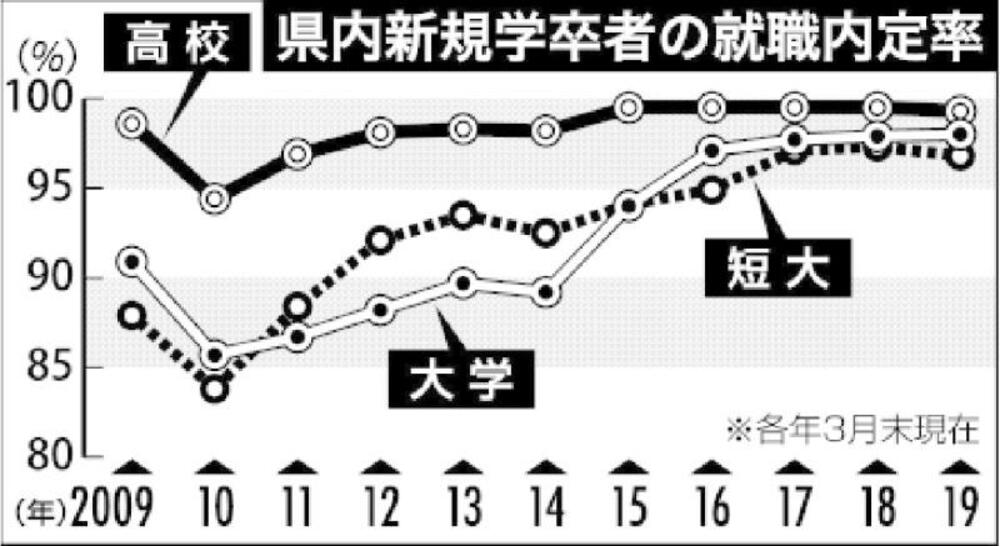 大学生 内定率微増98%<br />県内今春卒業 3月末時点 4年連続過去最高 短大、高卒も高水準維持