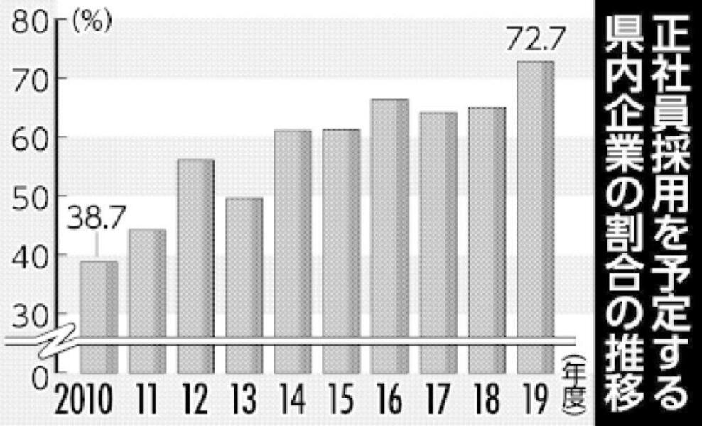 企業72% 正社員採用予定<br />19年度県内雇用帝国DB調査 過去最高、非正規も上昇 深刻な人手不足が影響
