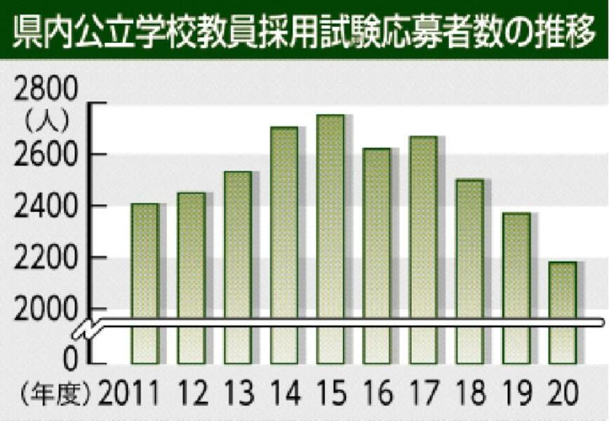 応募2180人 過去最少か<br />県20年度教員採用 民間流出、多忙な印象